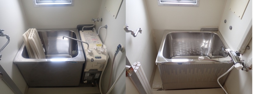 ・浴室内にあったボイラー(バランス釜)を撤去し、屋外にボイラーを新設