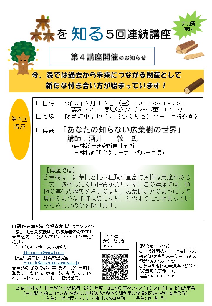 山形県飯豊町「森を知る」講座(全5回)への参加者募集