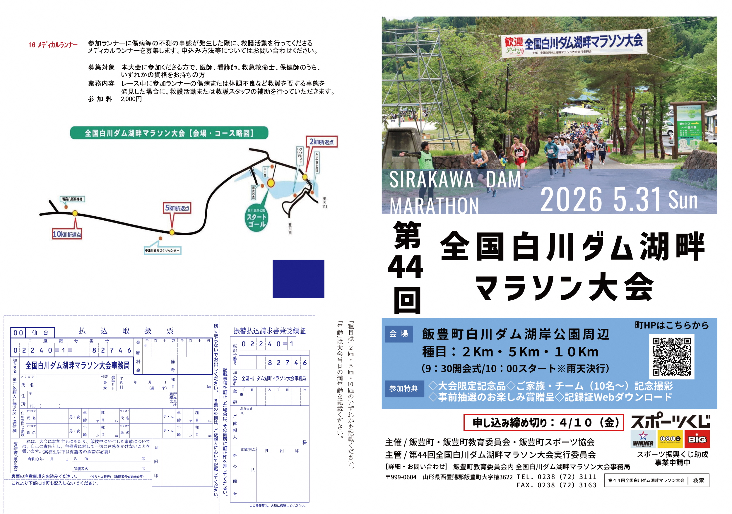 第44回全国白川ダム湖畔マラソン大会(2026年5月31日開催)