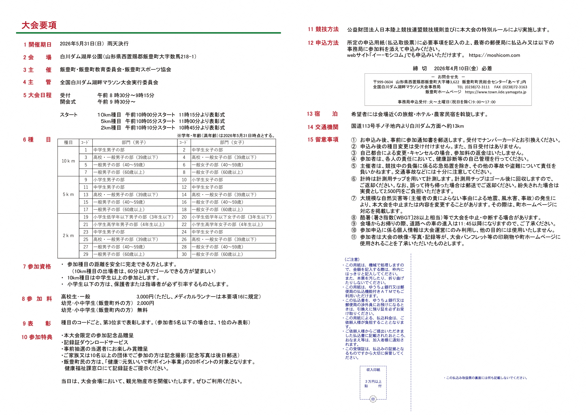 11)参加者は大会の映像・写真・記録等が、大会パンフレット等の印刷物や飯豊町ホームページに使用されることを了承いただいたものとします。