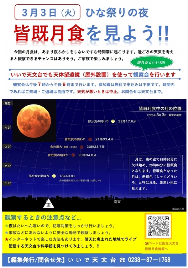 「ひな祭りの夜☆皆既月食を見よう」開催のお知らせ