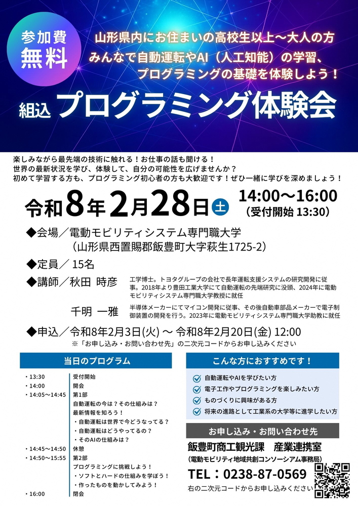【参加費無料】組込プログラミング体験会開催のお知らせ